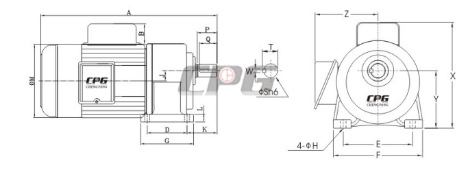 臥式附單相縮框半密鐵殼(剎車)馬達減速機
