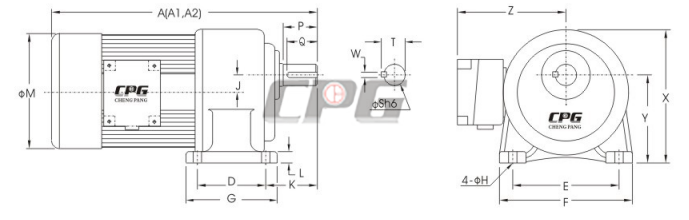 臥式附三相縮框鋁-鐵殼(剎車)馬達減速機