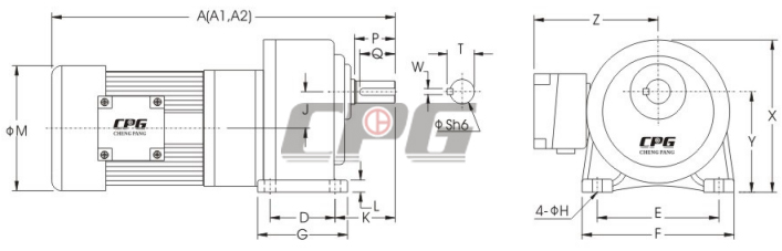 臥式高速比附三相鋁-鐵殼(剎車)馬達減速機