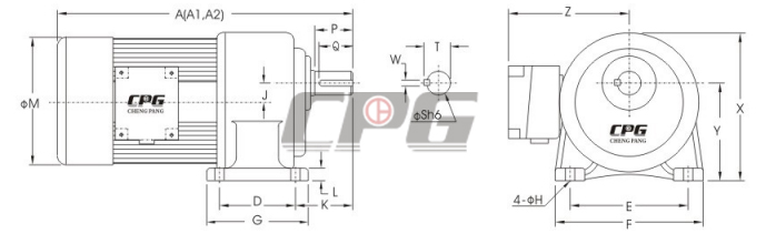 臥式附三相鋁-鐵殼(剎車)馬達減速機